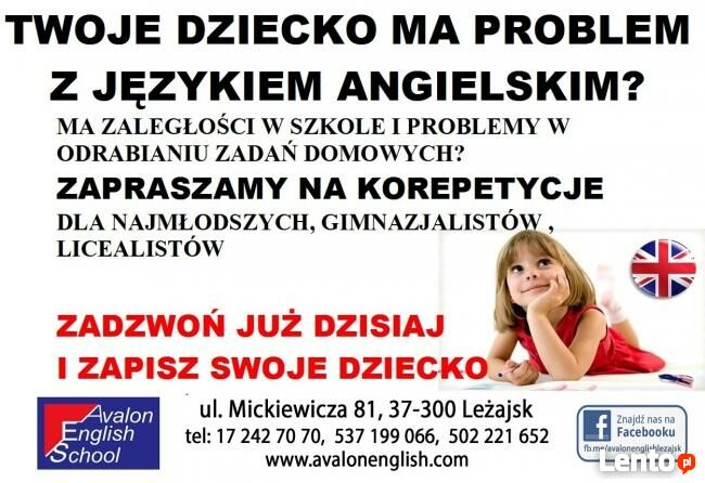 KOREPETYCJE Z JĘZYKA ANGIELSKIEGO DLA UCZNIÓW PODSTAWÓWKI, GIMNAZJUM I LICEUMAVALON ENGLISH SCHOOL,